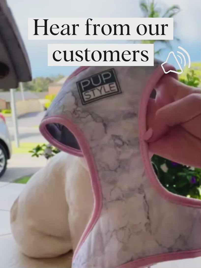 Our customers rave about how amazing their PUPSTYLE harnesses look after a quck wash. Made with quick-drying, moisture wicking polyester, every harness can be hand-washed or put in the washing machine and will look brand new in no time!